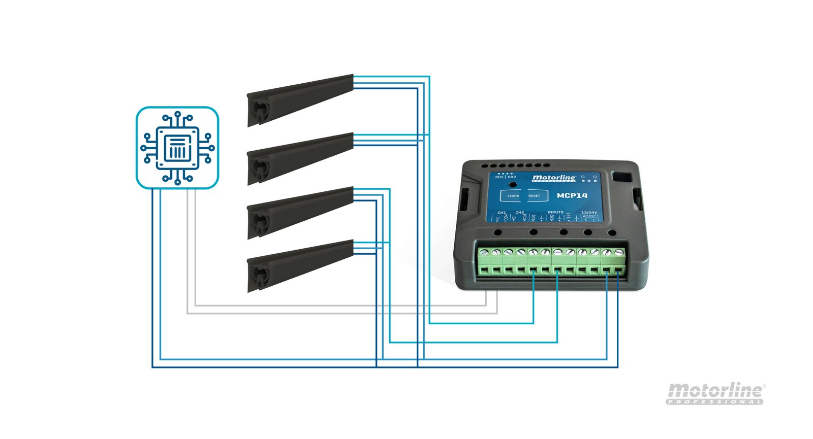 Motorline MCP14 | Controlador de Bandas de Seguridad Resistivas y Ópticas