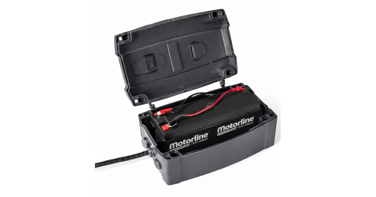 Kit cargador con 2 baterías 12Vdc/2.2Ah con caja para los motores 24V