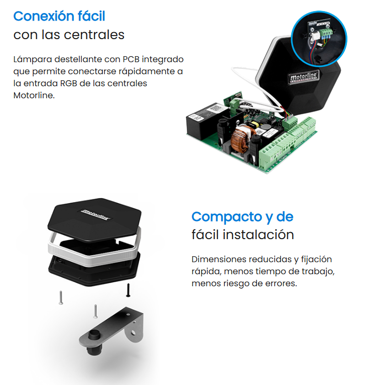 Lámpara destellante RGB para múltiples aplicaciones, compatible con todo tipo de centrales de Motorline.
