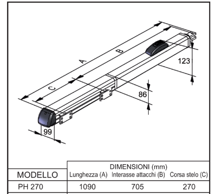 Motor hidráulico VDS PH 270 Reversible para motorizar puertas batientes residenciales de hasta 3 metros por hoja y hasta 500 KG de peso.