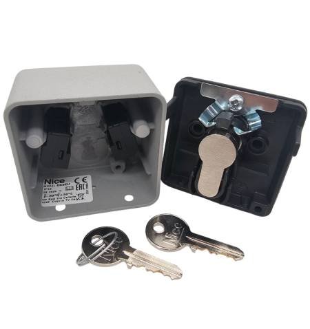 El NICE Era EKSEU es un selector de llave para exteriores de la marca Nice, diseñado para la activación de puertas automáticas, persianas y otros sistemas de automatización. El dispositivo cuenta con un cuerpo metálico antirrobo, un cilindro europeo y una cerradura de retorno automático, lo que lo hace muy seguro.