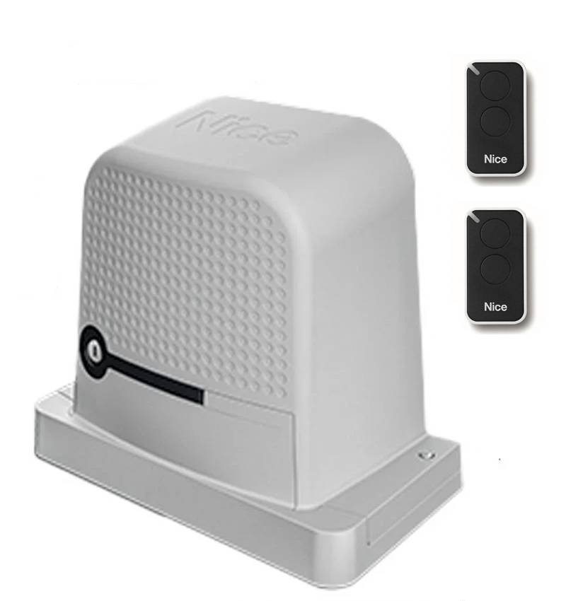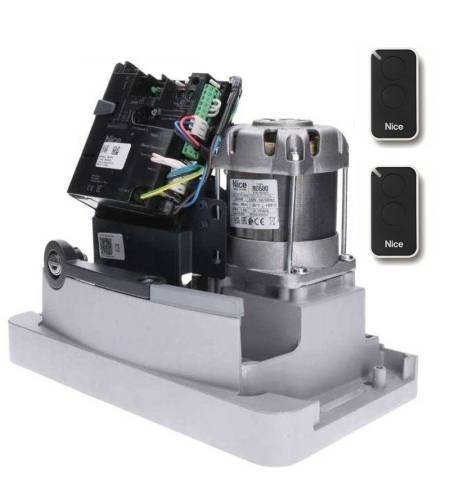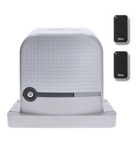 Moteur coulissant Nice ROBO600 électromécanique 230Vac pour les annulations résidentielles jusqu'à 600KG. It has incorporated a boîte de commande avec programmation automatique et récepteur 433 MHz compatible avec les émetteurs Nice UN.