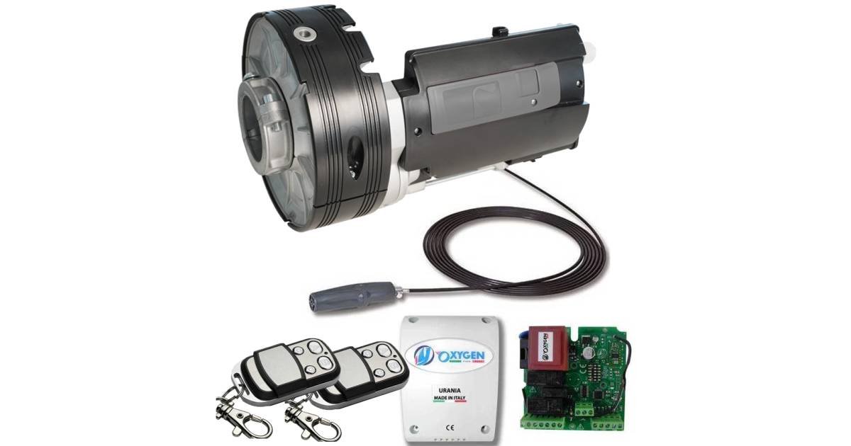 Moteur de porte enroulé Modèle de Pujol Winner Pro 600/200 conçu pour automatiser les stores à rouleaux des garages et des locaux commerciaux, avec une capacité de levage allant jusqu'à 170 kg.