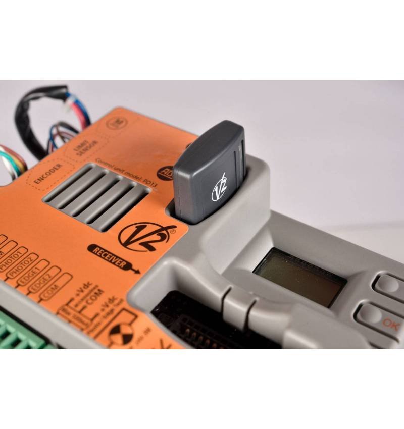 Les moteurs V2 Ayros électromécaniques pour portes coulissantes de 500, 600, 800, 1000, 1200 et 1500 kg avec Terminaisons de carrière magnétique et boîte de manœuvre numérique avec encodeur.