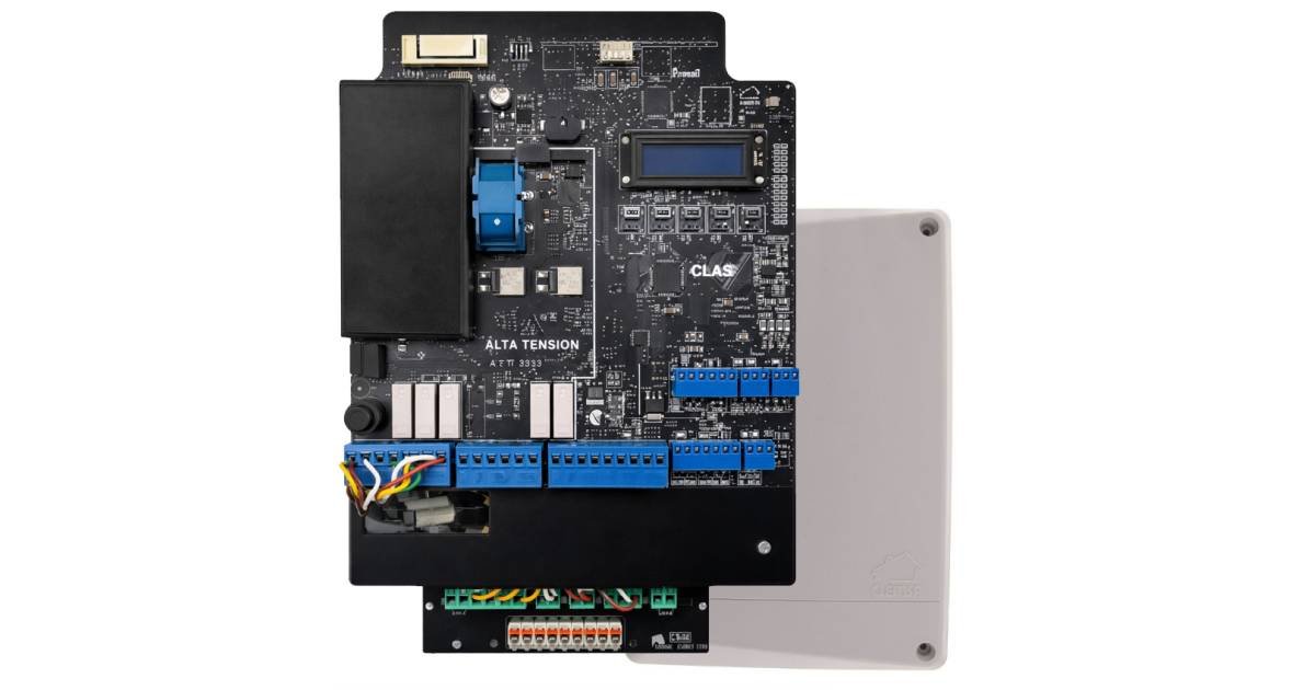 CLAS V Boîte de contrôle avec variateur de fréquence intégré, conçu pour les entraînements triphasés dans Portes inclinées, roulantes et coulissantes nourrentes 230 VAC. Cette centrale se distingue en offrant une opération beaucoup plus lisse, précise et silencieuse, optimisant les performances du moteur et réduisant l'usure mécanique de l'installation.