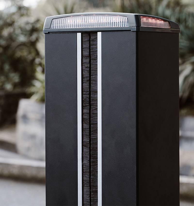 CHAINLIFT is an automatic barrier it's perfect for road control. It's a automation with 2 automated pillars at 24 Vdc for heavy use, produced in strong aluminium and lacquered in matte black (other RAL colours available). Also has a flashing RGB lamp on each pillar, which identify the status of the manoeuvre.