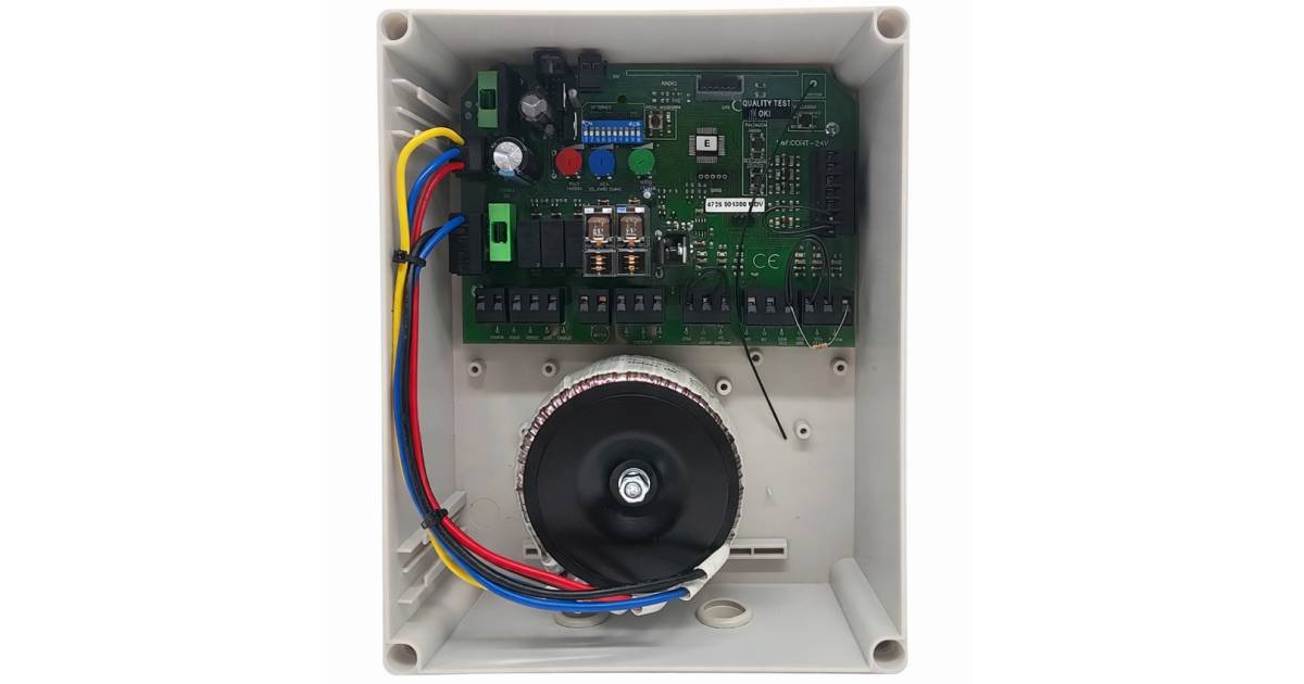 ✓ It has three separate ‘safety’ entries, one for a photocell that acts during the closing of the door, another photocell for the opening and another for a ‘pneumatic security’ with 8K2 resistive contact.