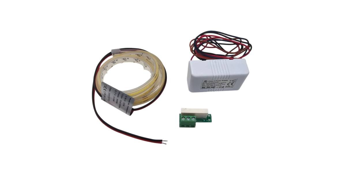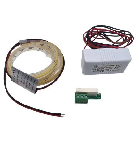 Transformer set and strip LED to use as complimentary light for motor DEA Geko / X and Livi / X composed of a COB LED tape (white light) of 60 cm and feeder + relay.
