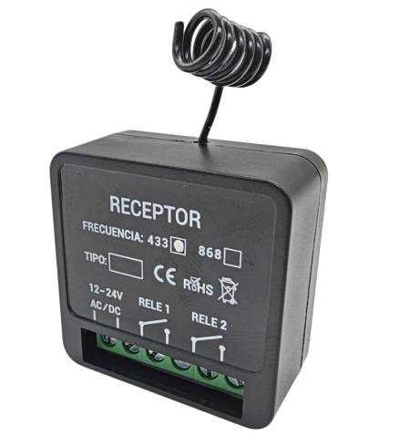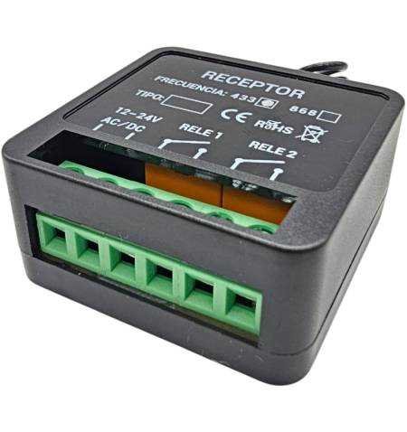 12 / 24V micro receiver 2-channel, with capacity for 400 codes or 1,000 codes.