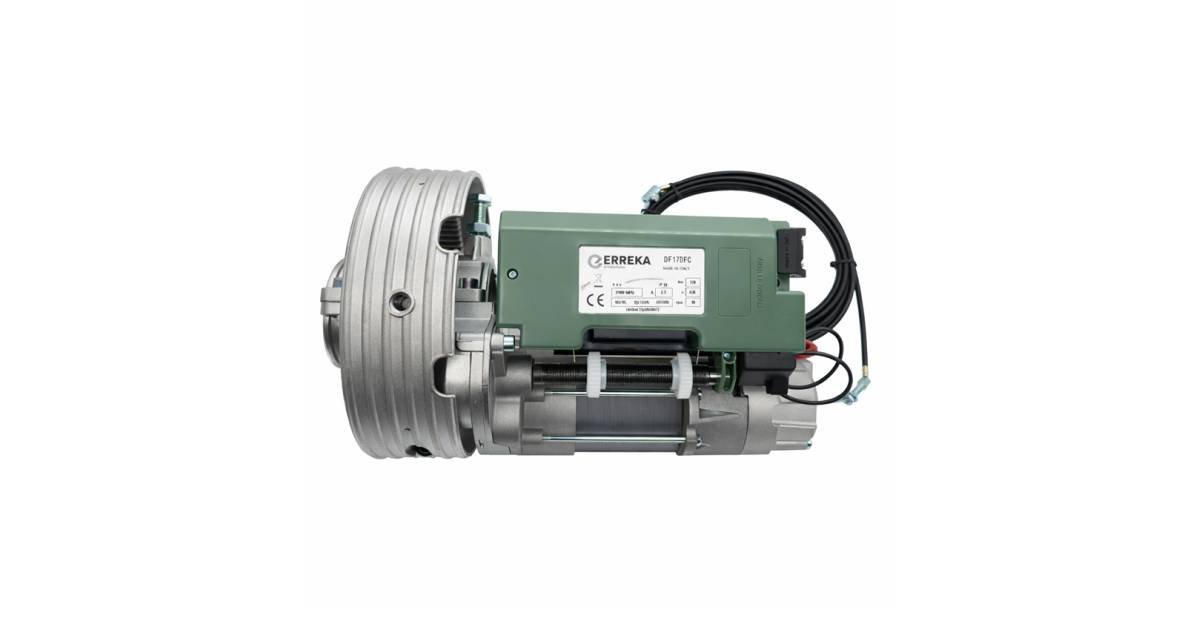 230V ERREKA DELFOS electromechanical motor for residential and industrial roller doors with lifting capacity from 170 to 360 kg, for tubes with 48mm, 60mm and 76mm shafts.