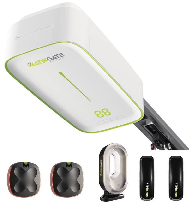 Brushless roofing engine Matikgate LIFE of 24VDC for residential sectional doors with Iron guide with strap.