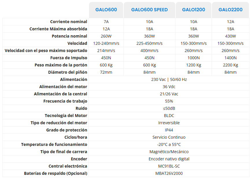 CARACTERÍSTICAS TÉCNIAS MOTORLINE GALO