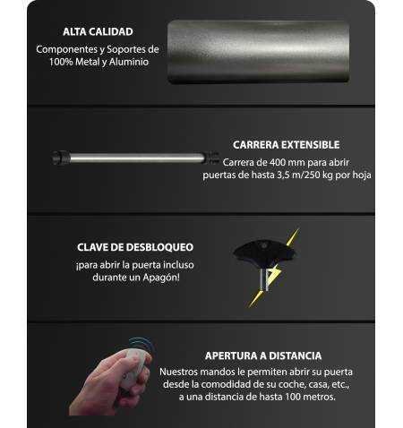 The motors of the Sargon series features a 300 mm (Sargon S) rod 400 mm (Sargon M), and are designed to be used in light doors of up to 250 kg.