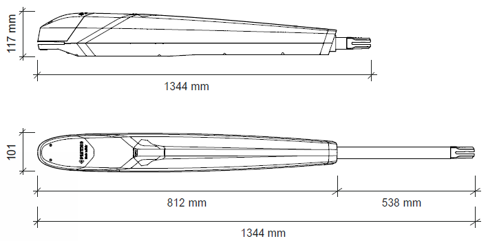 Atuador eletromecânico 230VAC para portas de balanço com folhas até 5m e 450kg.