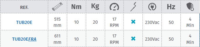 • Tub20Efra: 10nm motor mecânico (20kg) com receptor embutido