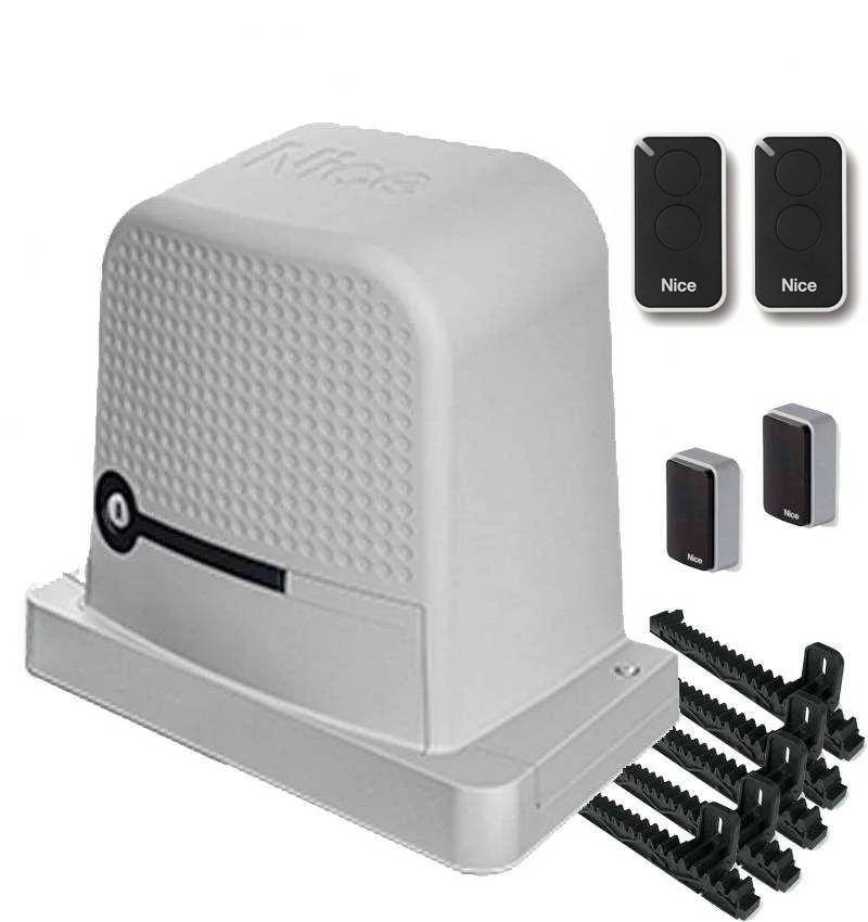 KIT Motor deslizante Nice ROBO600 eletromecânica 230Vac para cancelamentos residenciais até 600KG. Incorporou um caixa de comando com agendamento automático e receptor 433 MHz compatível com emissoras Nice INTI2.