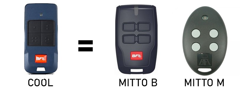 Garagem BFT Mitto legal de 4 canais, sistema de rollingcode 433,92 MHz.